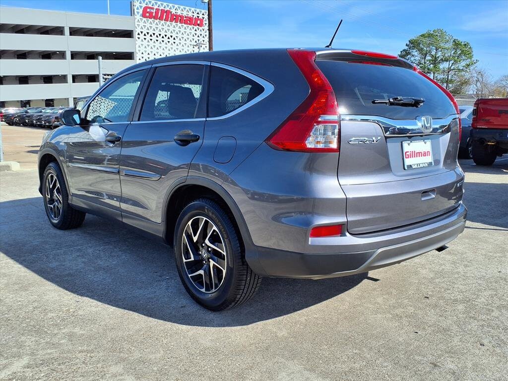 Gillman's Lifetime Engine Warranty lasts as long as you own your vehicle - free with the Gillman Pre-Owned Promise. If the vehicle isn't right for you, return it in purchase condition within 2 days or 200 miles as part of our Happy-Driving Guarantee. (Valid on vehicles under 90,000 miles and less than 7 years old). Check out this reliable 2016 Honda CR-V SE in sleek gray! This versatile SUV is perfect for daily driving or weekend adventures, offering a roomy interior, outstanding fuel economy, and Honda's legendary dependability. The SE trim features 17-inch aluminum alloy wheels, a rear multi-view camera system, Bluetooth connectivity for hands-free calls and audio streaming, Pandora internet radio app, and steering wheel-mounted controls for audio, phone, and cruise control. You'll appreciate the comfort of manual adjustable front seats, rear privacy glass, and a spacious cargo area with tie-down hooks. Safety comes standard with stability and traction control, front and rear side curtain airbags, child safety door locks, and a tire pressure monitoring system. With its efficient 2.4L engine and smooth CVT transmission, this CR-V delivers a comfortable and confident ride. Don't miss your chance to own a practical, stylish, and well-equipped SUV that's ready for anything. All vehicles subject to prior sale. We are not responsible for typographical errors and may change information without notice. Photos may not depict the actual vehicle. Tax, title, and license fees not included. Dealer Discount available to all buyers.Vehicles purchased from Gillman Automotive Group include a Bring It Back Guarantee: return the vehicle in purchase condition within two days or 200 miles. New current-model-year vehicles and qualifying pre-owned vehicles (under 90,000 miles and less than 7 years old) are eligible. Guarantee is non-transferable and has no cash value. Lifetime Warranty available on select pre-owned vehicles. See dealer for details; restrictions may apply.Certified Pre-Owned