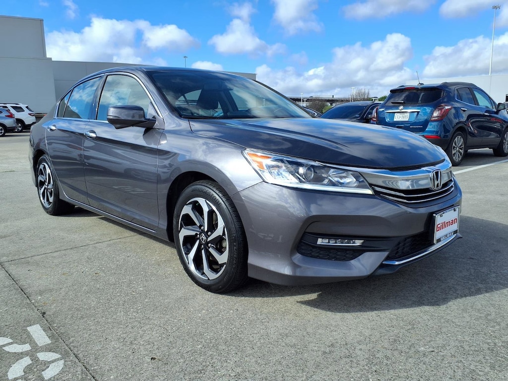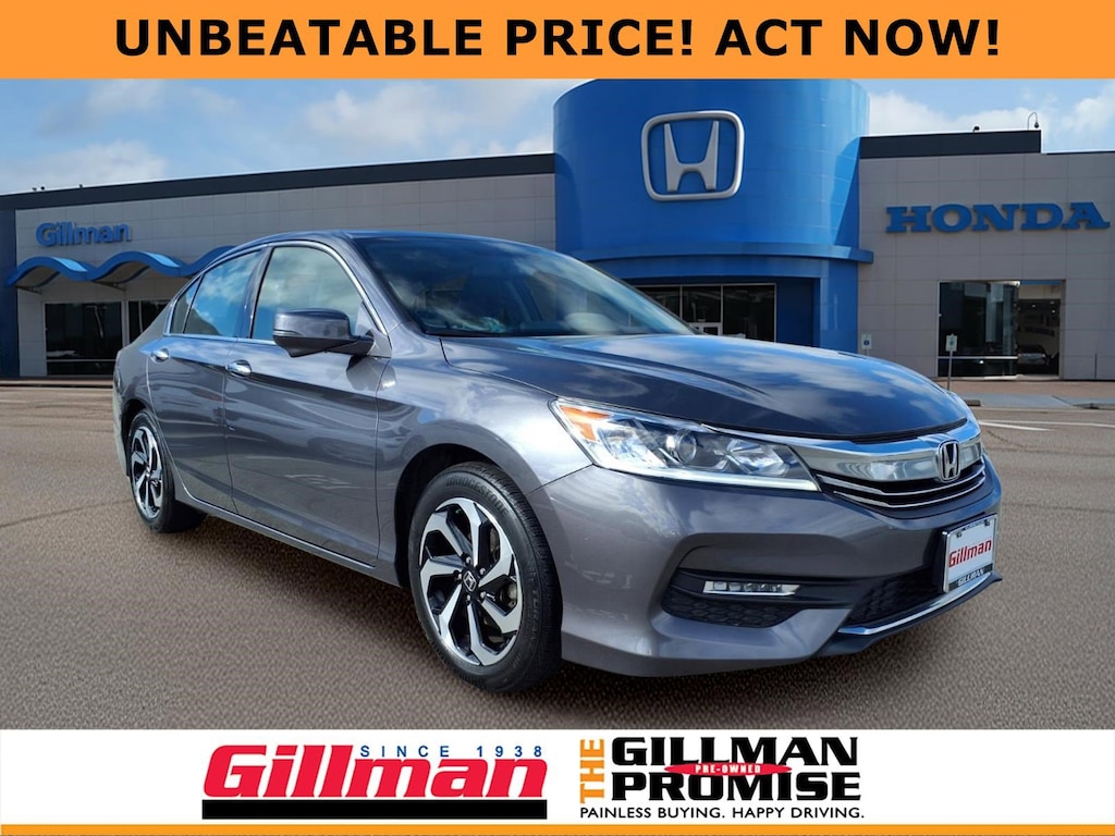 Gillman's Lifetime Engine Warranty lasts as long as you own your vehicle - free with the Gillman Pre-Owned Promise. If the vehicle isn't right for you, return it in purchase condition within 2 days or 200 miles as part of our Happy-Driving Guarantee. (Valid on vehicles under 90,000 miles and less than 7 years old). Experience power and luxury in this 2017 Honda Accord EX-L V6 Sedan. Equipped with a robust 3.5L V6 engine paired to a smooth 6-speed automatic transmission, this Accord delivers an exhilarating drive while maintaining Honda's renowned reliability. Enjoy premium features like leather-trimmed upholstery, heated front seats, a power moonroof, and driver's seat memory. Stay connected with Apple CarPlay, Android Auto, Bluetooth, and HondaLink infotainment on a 7-inch touchscreen, plus HD Radio and SiriusXM Satellite Radio for endless entertainment options. Safety is covered with a multi-view rear camera, blind spot camera display, and advanced airbags. Convenience features include remote engine start, proximity key entry, push-button start, and dual-zone automatic climate control. Aluminum alloy wheels, LED daytime running lights, and a sleek body-color exterior complete the upscale look. This Accord EX-L V6 offers the perfect blend of performance, technology, and comfort-ready for your next adventure. All vehicles subject to prior sale. We are not responsible for typographical errors and may change information without notice. Photos may not depict the actual vehicle. Tax, title, and license fees not included. Dealer Discount available to all buyers.Vehicles purchased from Gillman Automotive Group include a Bring It Back Guarantee: return the vehicle in purchase condition within two days or 200 miles. New current-model-year vehicles and qualifying pre-owned vehicles (under 90,000 miles and less than 7 years old) are eligible. Guarantee is non-transferable and has no cash value. Lifetime Warranty available on select pre-owned vehicles. See dealer for details; restrictions may apply.Certified Pre-Owned