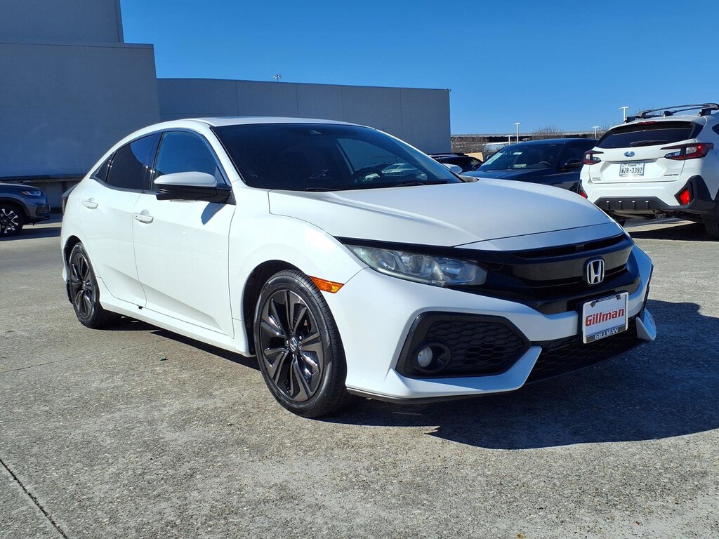 Gillman's Lifetime Engine Warranty lasts as long as you own your vehicle - free with the Gillman Pre-Owned Promise. If the vehicle isn't right for you, return it in purchase condition within 2 days or 200 miles as part of our Happy-Driving Guarantee. (Valid on vehicles under 90,000 miles and less than 7 years old). Discover the style and versatility of this White 2019 Honda Civic EX 4dr Hatchback. Enjoy a sporty drive with a turbocharged 1.5L engine and smooth CVT transmission, all while saving on fuel. This Civic EX is loaded with comfort and technology, featuring a power glass moonroof, Apple CarPlay and Android Auto, 7-inch touchscreen infotainment, and dual-zone automatic climate control. Safety is paramount, with Adaptive Cruise Control, Lane Keeping Assist, Automatic Emergency Braking, and a multi-view rear camera. Heated seats, aluminum alloy wheels, push-button start, remote engine start, and a spacious hatchback cargo area round out an exceptional package. Experience the reliability and innovation Honda is known for-schedule your test drive today! All vehicles subject to prior sale. We are not responsible for typographical errors and may change information without notice. Photos may not depict the actual vehicle. Tax, title, and license fees not included. Dealer Discount available to all buyers.Vehicles purchased from Gillman Automotive Group include a Bring It Back Guarantee: return the vehicle in purchase condition within two days or 200 miles. New current-model-year vehicles and qualifying pre-owned vehicles (under 90,000 miles and less than 7 years old) are eligible. Guarantee is non-transferable and has no cash value. Lifetime Warranty available on select pre-owned vehicles. See dealer for details; restrictions may apply.Certified Pre-Owned