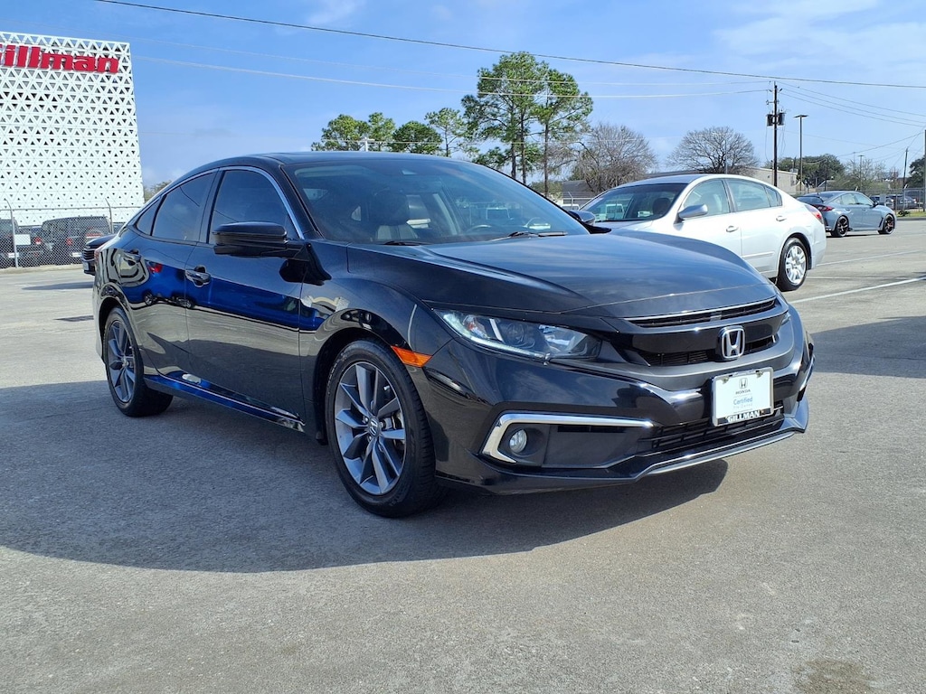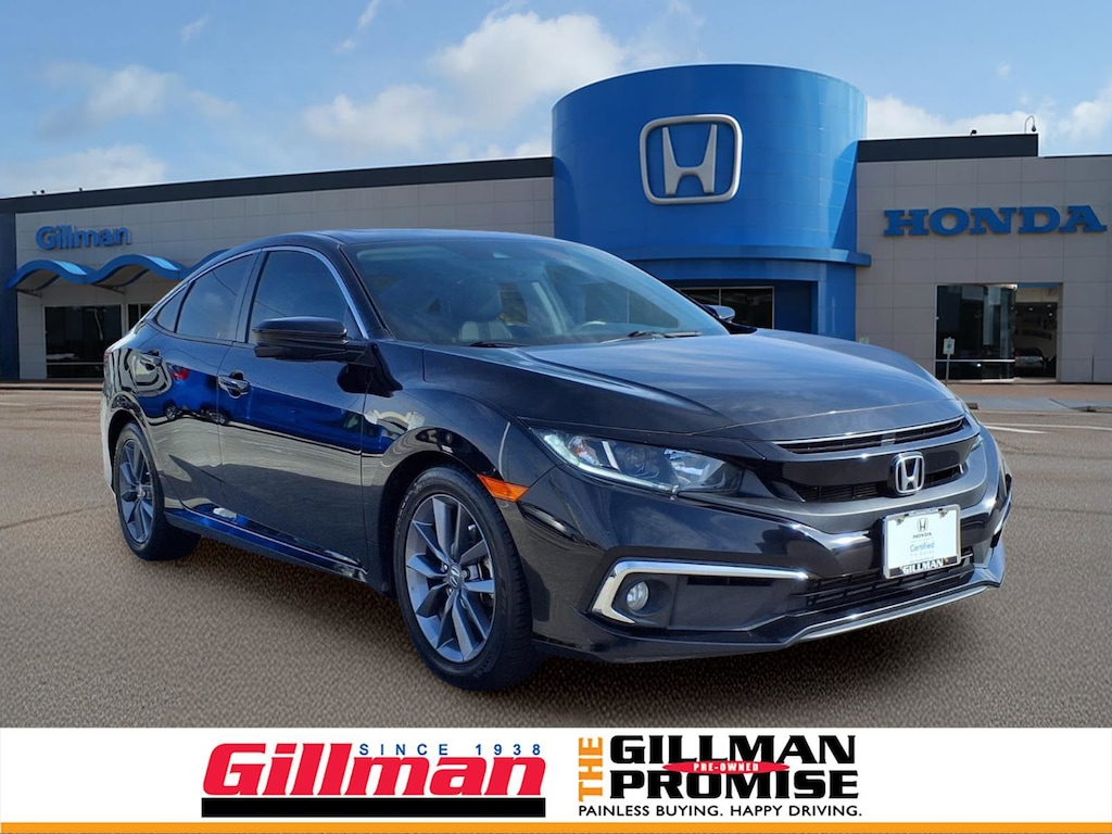 Gillman's Lifetime Engine Warranty lasts as long as you own your vehicle - free with the Gillman Pre-Owned Promise. If the vehicle isn't right for you, return it in purchase condition within 2 days or 200 miles as part of our Happy-Driving Guarantee. (Valid on vehicles under 90,000 miles and less than 7 years old). Step into style and reliability with this Black 2021 Honda Civic EX-L Sedan. Powered by a fuel-efficient 1.5L Turbo engine and smooth CVT, this Civic combines performance with comfort. Enjoy premium touches like leather-trimmed upholstery, heated front seats, a power moonroof, and dual-zone automatic climate control. Stay connected with Apple CarPlay, Android Auto, HondaLink compatibility, and an easy-to-use 7-inch touchscreen display. Safety is paramount with advanced features such as Front Automatic Emergency Braking, Lane Keeping Assist, Adaptive Cruise Control with Stop and Go, and a rear multi-view camera. Aluminum alloy wheels, remote engine start, and proximity entry add convenience and style. Experience the perfect blend of technology, safety, and sophistication-come test drive your next Honda Civic today! All vehicles subject to prior sale. We are not responsible for typographical errors and may change information without notice. Photos may not depict the actual vehicle. Tax, title, and license fees not included. Dealer Discount available to all buyers.Vehicles purchased from Gillman Automotive Group include a Bring It Back Guarantee: return the vehicle in purchase condition within two days or 200 miles. New current-model-year vehicles and qualifying pre-owned vehicles (under 90,000 miles and less than 7 years old) are eligible. Guarantee is non-transferable and has no cash value. Lifetime Warranty available on select pre-owned vehicles. See dealer for details; restrictions may apply.Certified Pre-Owned