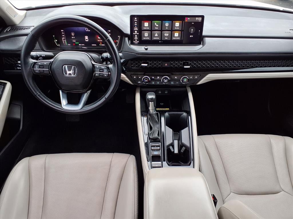 Gillman's Lifetime Engine Warranty lasts as long as you own your vehicle - free with the Gillman Pre-Owned Promise. If the vehicle isn't right for you, return it in purchase condition within 2 days or 200 miles as part of our Happy-Driving Guarantee. (Valid on vehicles under 90,000 miles and less than 7 years old). Experience premium efficiency and advanced technology with the 2023 Honda Accord Hybrid Touring. Powered by a 2.0L Hybrid I4 engine and a smooth 1-speed direct-drive automatic transmission, this sedan seamlessly blends performance with impressive fuel economy. The Touring trim elevates your drive with leather-trimmed upholstery, heated and ventilated front seats, a Bose premium sound system, and a panoramic moonroof. Stay connected with a 12.3-inch infotainment screen featuring Google Built-In, wireless Apple CarPlay and Android Auto, and Amazon Alexa compatibility. Safety is paramount, thanks to Honda Sensing with adaptive cruise control, lane keeping assist, front and rear automatic emergency braking, blind spot monitoring, and traffic sign recognition. Additional highlights include wireless phone charging, a head-up display, rain-sensing wipers, and customizable digital instrument cluster. Discover the perfect combination of innovation, comfort, and peace of mind in this sophisticated hybrid sedan. Schedule your test drive today and elevate your daily commute. All vehicles subject to prior sale. We are not responsible for typographical errors and may change information without notice. Photos may not depict the actual vehicle. Tax, title, and license fees not included. Dealer Discount available to all buyers.Vehicles purchased from Gillman Automotive Group include a Bring It Back Guarantee: return the vehicle in purchase condition within two days or 200 miles. New current-model-year vehicles and qualifying pre-owned vehicles (under 90,000 miles and less than 7 years old) are eligible. Guarantee is non-transferable and has no cash value. Lifetime Warranty available on select pre-owned vehicles. See dealer for details; restrictions may apply.Certified Pre-Owned