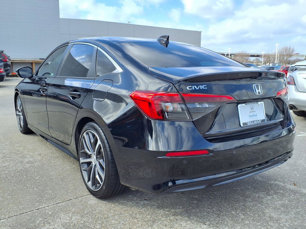 Gillman's Lifetime Engine Warranty lasts as long as you own your vehicle - free with the Gillman Pre-Owned Promise. If the vehicle isn't right for you, return it in purchase condition within 2 days or 200 miles as part of our Happy-Driving Guarantee. (Valid on vehicles under 90,000 miles and less than 7 years old). Experience top-tier style and advanced features with this Black 2023 Honda Civic Touring Sedan. Enjoy a powerful yet efficient 1.5L Turbo I4 engine paired with a 7-speed shiftable CVT for smooth, responsive driving. The Touring trim pampers you with leather-trimmed upholstery, heated front seats, a power moonroof, and a premium Bose audio system with 11 speakers and subwoofer. Stay connected and in control with a 9-inch touchscreen infotainment system, integrated navigation, wireless Apple CarPlay and Android Auto, plus HondaLink compatibility. Safety is a priority with adaptive cruise control, lane keeping assist, blind spot monitoring, front and rear automatic emergency braking, and rear cross traffic alert. Additional highlights include remote engine start, auto-dimming rearview mirror, and rain-sensing wipers. Modern styling features like LED headlights, chrome window trim, and a sleek decklid rear spoiler complete this sophisticated sedan. With 21,038 miles on the odometer, this Civic Touring is ready for its next owner. All vehicles subject to prior sale. We are not responsible for typographical errors and may change information without notice. Photos may not depict the actual vehicle. Tax, title, and license fees not included. Dealer Discount available to all buyers.Vehicles purchased from Gillman Automotive Group include a Bring It Back Guarantee: return the vehicle in purchase condition within two days or 200 miles. New current-model-year vehicles and qualifying pre-owned vehicles (under 90,000 miles and less than 7 years old) are eligible. Guarantee is non-transferable and has no cash value. Lifetime Warranty available on select pre-owned vehicles. See dealer for details; restrictions may apply.Certified Pre-Owned