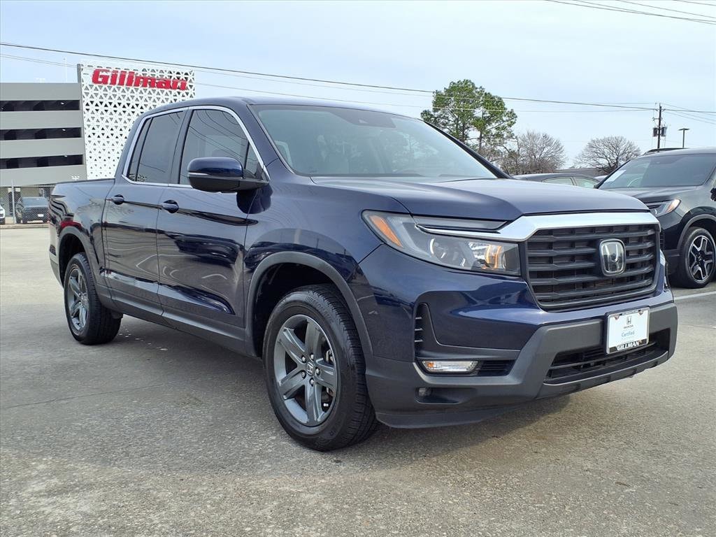 Gillman's Lifetime Engine Warranty lasts as long as you own your vehicle - free with the Gillman Pre-Owned Promise. If the vehicle isn't right for you, return it in purchase condition within 2 days or 200 miles as part of our Happy-Driving Guarantee. (Valid on vehicles under 90,000 miles and less than 7 years old). Discover versatility and comfort in this Blue 2023 Honda Ridgeline AWD RTL Crew Cab. With all-wheel drive, a powerful 3.5L V6 engine, and a 9-speed automatic transmission, this Ridgeline is ready for work or adventure. Enjoy premium features like leather-trimmed upholstery, heated front seats, a power moonroof, adaptive cruise control, and Apple CarPlay/Android Auto integration on an 8-inch touchscreen. Stay safe with advanced driver assistance features including Lane Keeping Assist, Blind Spot Monitoring, Rear Cross Traffic Alert, and Automatic Emergency Braking with Pedestrian Detection. The dual-action tailgate and in-bed storage add convenience for hauling, while the spacious crew cab ensures comfort for family or crew. Loaded with tech, comfort, and safety, this Ridgeline RTL is perfect for those seeking reliability and capability. Schedule your test drive today! All vehicles subject to prior sale. We are not responsible for typographical errors and may change information without notice. Photos may not depict the actual vehicle. Tax, title, and license fees not included. Dealer Discount available to all buyers.Vehicles purchased from Gillman Automotive Group include a Bring It Back Guarantee: return the vehicle in purchase condition within two days or 200 miles. New current-model-year vehicles and qualifying pre-owned vehicles (under 90,000 miles and less than 7 years old) are eligible. Guarantee is non-transferable and has no cash value. Lifetime Warranty available on select pre-owned vehicles. See dealer for details; restrictions may apply.Certified Pre-Owned