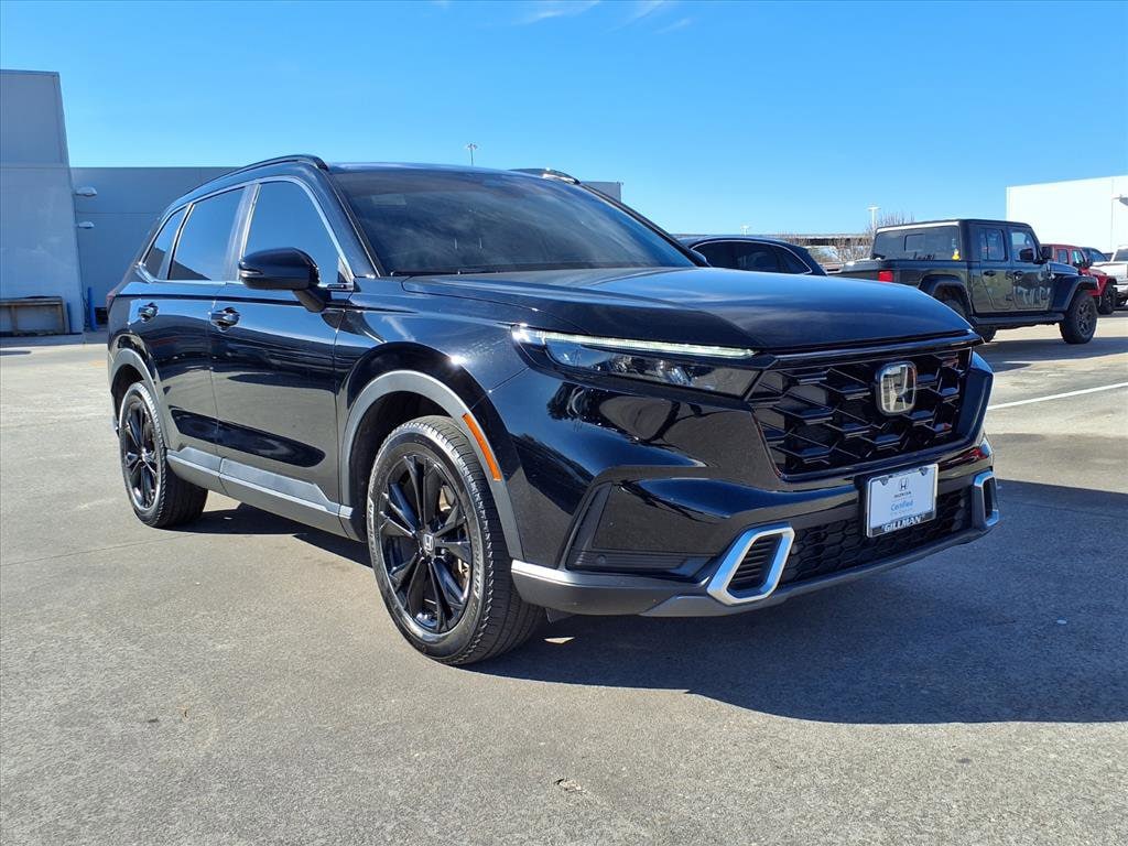 Gillman's Lifetime Engine Warranty lasts as long as you own your vehicle - free with the Gillman Pre-Owned Promise. If the vehicle isn't right for you, return it in purchase condition within 2 days or 200 miles as part of our Happy-Driving Guarantee. (Valid on vehicles under 90,000 miles and less than 7 years old). Experience the perfect blend of efficiency, technology, and luxury with this Black 2024 Honda CR-V Hybrid AWD Sport Touring. Enjoy a responsive 2.0L Hybrid engine paired with an advanced AWD system and a smooth 1-speed direct-drive automatic transmission. Stay connected on the go with wireless Apple CarPlay and Android Auto, Amazon Alexa compatibility, and a 9-inch infotainment touchscreen. Safety is paramount with front and rear automatic emergency braking, lane keeping assist, adaptive cruise control, blind spot monitoring, rear cross traffic alert, and traffic sign recognition. Comfort features include leather-trimmed upholstery, heated front seats and steering wheel, power-adjustable driver's seat with memory, a panoramic moonroof, hands-free power liftgate, and Bose premium audio. Additional highlights: wireless charging, Wi-Fi hotspot, HondaLink smart device integration, multiple USB-C outlets, and advanced navigation with real-time traffic. With its bold black exterior and sporty design, this CR-V Hybrid Sport Touring is ready for your next adventure. Schedule your test drive today! All vehicles subject to prior sale. We are not responsible for typographical errors and may change information without notice. Photos may not depict the actual vehicle. Tax, title, and license fees not included. Dealer Discount available to all buyers.Vehicles purchased from Gillman Automotive Group include a Bring It Back Guarantee: return the vehicle in purchase condition within two days or 200 miles. New current-model-year vehicles and qualifying pre-owned vehicles (under 90,000 miles and less than 7 years old) are eligible. Guarantee is non-transferable and has no cash value. Lifetime Warranty available on select pre-owned vehicles. See dealer for details; restrictions may apply.Certified Pre-Owned