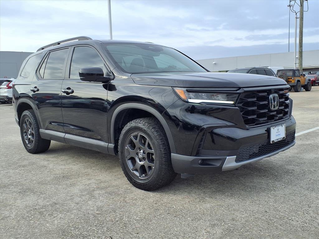 Certified. Crystal Black Pearl 2024 Honda Pilot TrailSport AWD 10-Speed Automatic 3.5L V6 DOHC 24V AWD.