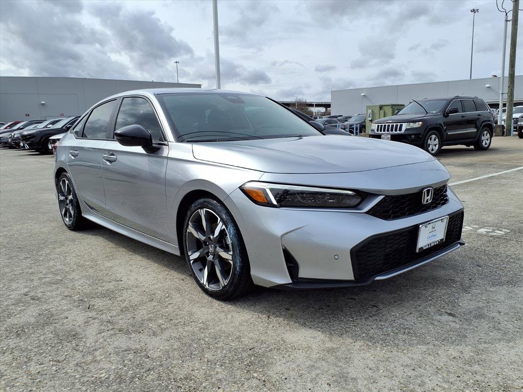 Gillman's Lifetime Engine Warranty lasts as long as you own your vehicle - free with the Gillman Pre-Owned Promise. If the vehicle isn't right for you, return it in purchase condition within 2 days or 200 miles as part of our Happy-Driving Guarantee. (Valid on vehicles under 90,000 miles and less than 7 years old). Experience the future of driving with this Silver 2026 Honda Civic Hybrid Sport Touring Sedan, showing only 1,560 miles on the odometer. This top-tier Civic offers a perfect blend of efficiency, comfort, and cutting-edge technology. Enjoy seamless connectivity with Google Built-In Infotainment, wireless Apple CarPlay and Android Auto, and a crisp 9-inch touchscreen. Stay safe with advanced features like Front & Rear Automatic Emergency Braking, Pedestrian Detection, Lane Keeping Assist, Blind Spot Safety, and Rear Cross Traffic Alert. Drive with confidence using Adaptive Cruise Control and Lane Centering. Premium touches include leather-trimmed upholstery, heated front seats, Bose premium audio, and a power moonroof. The 2.0L Hybrid engine delivers impressive power and efficiency, paired with FWD and a smooth 1-speed direct-drive automatic. Don't miss this opportunity to own a nearly-new, fully loaded Civic Hybrid that combines modern design, advanced tech, and exceptional safety. All vehicles subject to prior sale. We are not responsible for typographical errors and may change information without notice. Photos may not depict the actual vehicle. Tax, title, and license fees not included. Dealer Discount available to all buyers.Vehicles purchased from Gillman Automotive Group include a Bring It Back Guarantee: return the vehicle in purchase condition within two days or 200 miles. New current-model-year vehicles and qualifying pre-owned vehicles (under 90,000 miles and less than 7 years old) are eligible. Guarantee is non-transferable and has no cash value. Lifetime Warranty available on select pre-owned vehicles. See dealer for details; restrictions may apply.Certified Pre-Owned