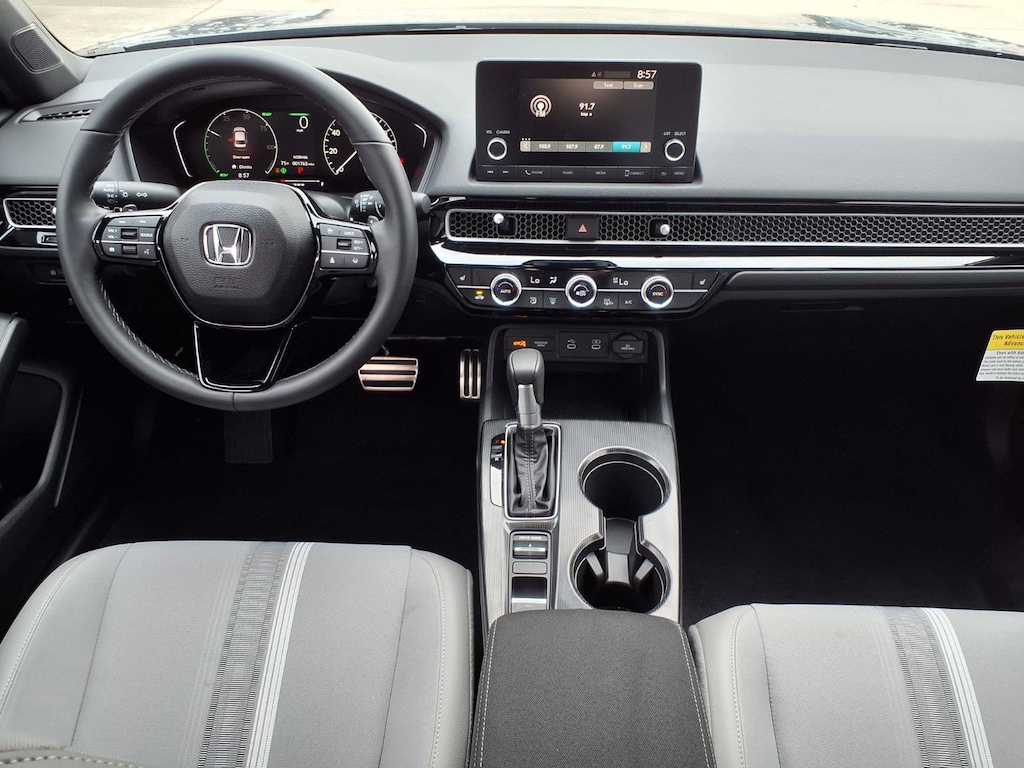 Gillman's Lifetime Engine Warranty lasts as long as you own your vehicle - free with the Gillman Pre-Owned Promise. If the vehicle isn't right for you, return it in purchase condition within 2 days or 200 miles as part of our Happy-Driving Guarantee. (Valid on vehicles under 90,000 miles and less than 7 years old). Experience efficiency and sporty style in this new 2026 Honda Civic Hybrid Sport Sedan, finished in striking dark gray with just 5 miles on the odometer. Enjoy a dynamic drive with a 2.0L Hybrid I4 engine (200hp, 232 ft-lbs), FWD, and a 1-speed direct-drive automatic transmission. Stay connected with Android Auto and Apple CarPlay, plus HondaLink smart device compatibility. Safety is paramount, featuring front automatic emergency braking, pedestrian detection, adaptive cruise control, lane keeping assist, rear cross-traffic alert, and a multi-view rear camera system. Comfort and convenience abound with a power glass moonroof, heated front seats, dual-zone automatic climate control, push-button start, remote engine start, and a 7-inch customizable digital instrument cluster. The Civic Hybrid Sport also offers LED headlights and taillights, a leather-wrapped steering wheel, and split rear seat folding for added versatility. This is the perfect blend of innovation, efficiency, and modern style-ready for your next adventure. All vehicles subject to prior sale. We are not responsible for typographical errors and may change information without notice. Photos may not depict the actual vehicle. Tax, title, and license fees not included. Dealer Discount available to all buyers.Vehicles purchased from Gillman Automotive Group include a Bring It Back Guarantee: return the vehicle in purchase condition within two days or 200 miles. New current-model-year vehicles and qualifying pre-owned vehicles (under 90,000 miles and less than 7 years old) are eligible. Guarantee is non-transferable and has no cash value. Lifetime Warranty available on select pre-owned vehicles. See dealer for details; restrictions may apply.Certified Pre-Owned