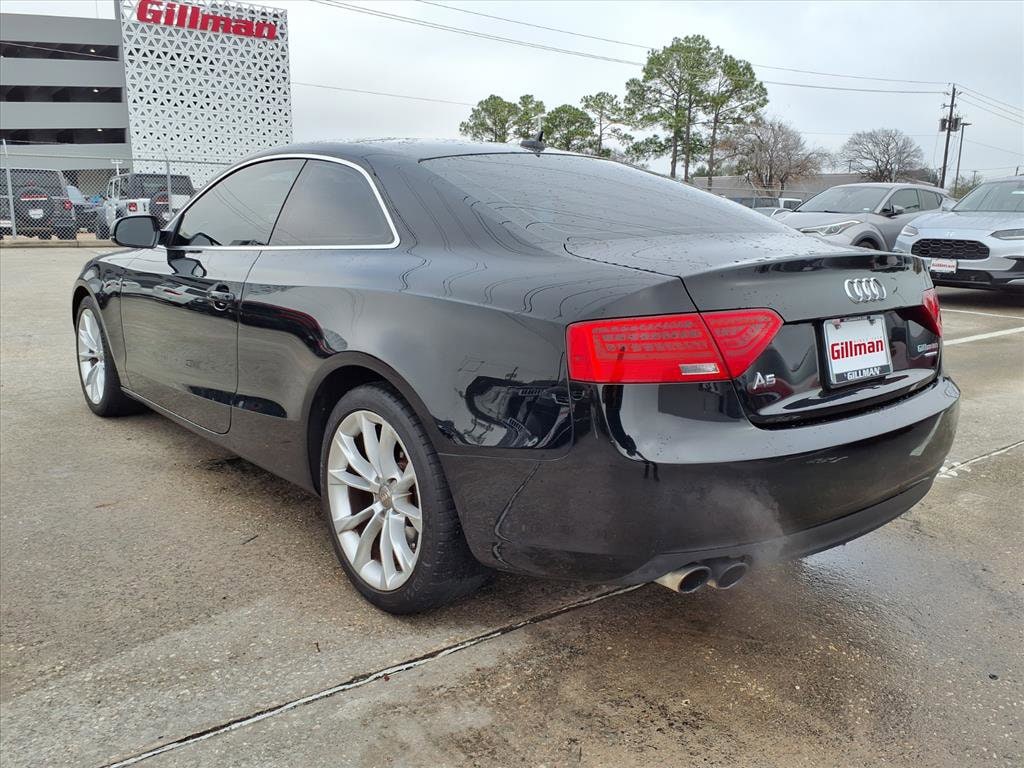Gillman's Lifetime Engine Warranty lasts as long as you own your vehicle - free with the Gillman Pre-Owned Promise. If the vehicle isn't right for you, return it in purchase condition within 2 days or 200 miles as part of our Happy-Driving Guarantee. (Valid on vehicles under 90,000 miles and less than 7 years old). Experience luxury and performance with this sleek black 2013 Audi A5 AWD 2.0T quattro Premium Coupe. With Audi's renowned quattro all-wheel drive and an efficient 2.0L turbocharged engine paired to an 8-speed automatic transmission, this coupe delivers dynamic handling and a smooth ride in all conditions. Enjoy premium features like a panoramic sunroof, Bluetooth connectivity, SiriusXM satellite radio, and a 6.5-inch infotainment screen. The interior boasts leather upholstery, power-adjustable front seats with lumbar support, ambient lighting, and aluminum alloy wheels for a refined look and feel. Safety is prioritized with traction and stability control, 4-wheel ABS, front and side curtain airbags, and a tire pressure monitoring system. Stay comfortable with dual-zone automatic climate control and heated side mirrors. This Audi A5 is ready to impress-schedule your test drive today and elevate your driving experience. All vehicles subject to prior sale. We are not responsible for typographical errors and may change information without notice. Photos may not depict the actual vehicle. Tax, title, and license fees not included. Dealer Discount available to all buyers.Vehicles purchased from Gillman Automotive Group include a Bring It Back Guarantee: return the vehicle in purchase condition within two days or 200 miles. New current-model-year vehicles and qualifying pre-owned vehicles (under 90,000 miles and less than 7 years old) are eligible. Guarantee is non-transferable and has no cash value. Lifetime Warranty available on select pre-owned vehicles. See dealer for details; restrictions may apply.
