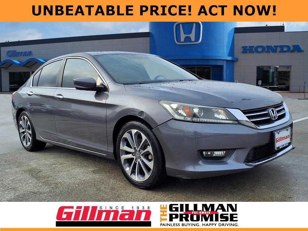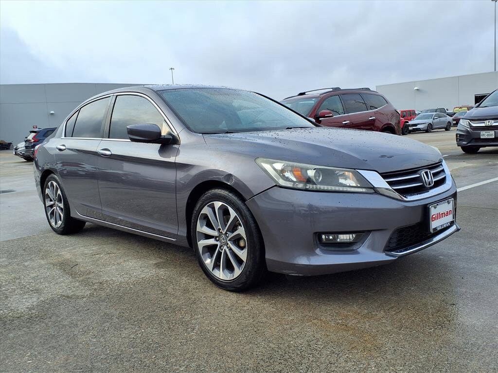 Gillman's Lifetime Engine Warranty lasts as long as you own your vehicle - free with the Gillman Pre-Owned Promise. If the vehicle isn't right for you, return it in purchase condition within 2 days or 200 miles as part of our Happy-Driving Guarantee. (Valid on vehicles under 90,000 miles and less than 7 years old). Upgrade your drive with this stylish gray 2015 Honda Accord Sport 4dr Sedan. Enjoy the perfect blend of performance and practicality with a responsive 2.4L I4 engine and smooth CVT transmission. This Accord Sport features striking aluminum alloy wheels, a sporty decklid rear spoiler, and chrome window trim for a modern look. Inside, stay comfortable with a power-adjustable driver's seat, dual-zone automatic climate control, and a leather-wrapped steering wheel. Stay connected and entertained with a 7-inch infotainment screen, Bluetooth wireless data link, Pandora internet radio, and multiple auxiliary audio inputs (USB, iPod/iPhone compatible). Safety is a priority with a rearview camera, electronic brakeforce distribution, traction and stability control, and a suite of airbags. Convenient touches include keyless entry, cruise control, auto on/off headlights, rear seat folding, and ample storage options. Don't miss out on this well-equipped, reliable sedan that's perfect for daily commuting or family trips. Visit us today for a test drive! All vehicles subject to prior sale. We are not responsible for typographical errors and may change information without notice. Photos may not depict the actual vehicle. Tax, title, and license fees not included. Dealer Discount available to all buyers.Vehicles purchased from Gillman Automotive Group include a Bring It Back Guarantee: return the vehicle in purchase condition within two days or 200 miles. New current-model-year vehicles and qualifying pre-owned vehicles (under 90,000 miles and less than 7 years old) are eligible. Guarantee is non-transferable and has no cash value. Lifetime Warranty available on select pre-owned vehicles. See dealer for details; restrictions may apply.