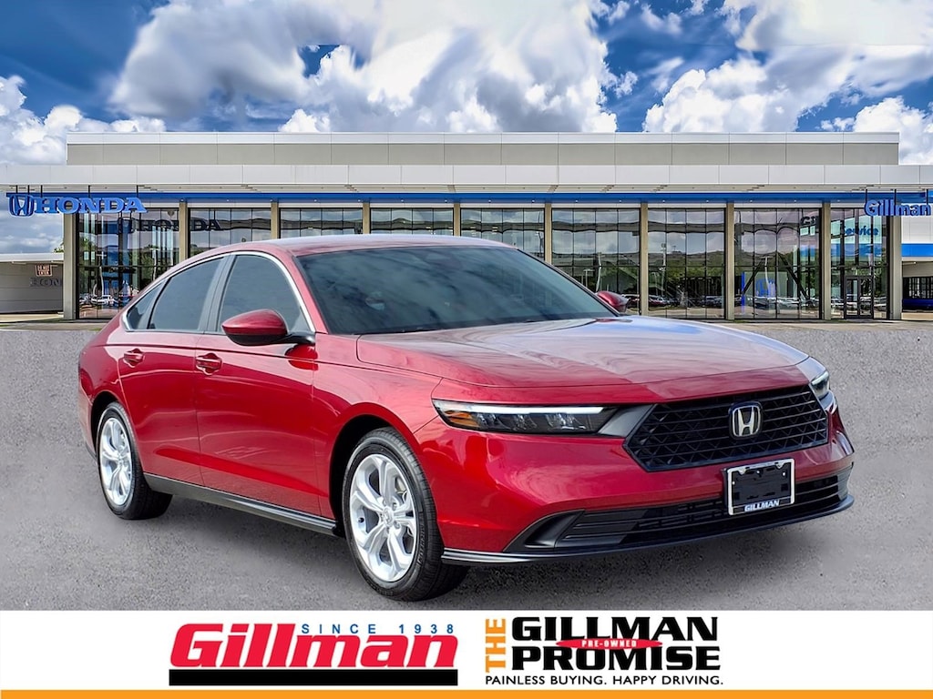 Gillman's Lifetime Engine Warranty lasts as long as you own your vehicle - free with the Gillman Pre-Owned Promise. If the vehicle isn't right for you, return it in purchase condition within 2 days or 200 miles as part of our Happy-Driving Guarantee. (Valid on vehicles under 90,000 miles and less than 7 years old). Experience the all-new 2025 Honda Accord LX Sedan in striking Dark Red, with only 1 mile on the odometer. Enjoy impressive performance from a 1.5L Turbo I4 engine paired with a smooth CVT and Front-Wheel Drive. Stay connected and safe with features like a 10.2-inch digital instrument cluster, 7-inch infotainment touchscreen, Apple CarPlay, Android Auto, Bluetooth, and Amazon Alexa compatibility. Advanced safety technologies include Front Automatic Emergency Braking, Lane Keeping Assist, Pedestrian Detection, Adaptive Cruise Control with Stop and Go, and Traffic Sign Recognition. Comfort and convenience are enhanced with automatic climate control, push-button start, remote engine start, customizable instrument cluster, and HondaLink smart device compatibility. Additional highlights: LED headlights and taillights, rear multi-view camera, multi-function steering wheel controls, and spacious interior with rear seat reminders. Discover modern style, technology, and security in a premium sedan designed for every journey. All vehicles subject to prior sale. We are not responsible for typographical errors and may change information without notice. Photos may not depict the actual vehicle. Tax, title, and license fees not included. Dealer Discount available to all buyers.Vehicles purchased from Gillman Automotive Group include a Bring It Back Guarantee: return the vehicle in purchase condition within two days or 200 miles. New current-model-year vehicles and qualifying pre-owned vehicles (under 90,000 miles and less than 7 years old) are eligible. Guarantee is non-transferable and has no cash value. Lifetime Warranty available on select pre-owned vehicles. See dealer for details; restrictions may apply.Certified Pre-Owned