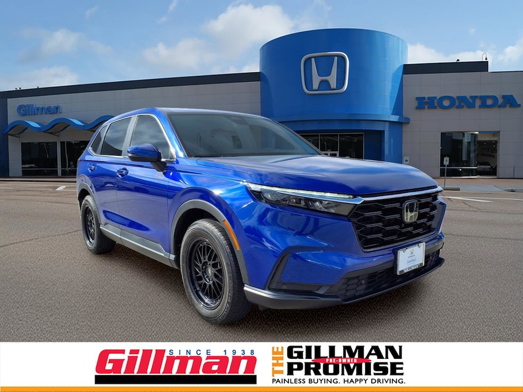 Gillman's Lifetime Engine Warranty lasts as long as you own your vehicle - free with the Gillman Pre-Owned Promise. If the vehicle isn't right for you, return it in purchase condition within 2 days or 200 miles as part of our Happy-Driving Guarantee. (Valid on vehicles under 90,000 miles and less than 7 years old). Experience style, comfort, and advanced technology in this striking blue 2025 Honda CR-V AWD EX-L. Equipped with all-wheel drive for confident handling in any weather, this SUV features luxurious leather-trimmed upholstery, heated front seats, and a power moonroof for an elevated driving experience. Enjoy seamless connectivity with wireless Apple CarPlay and Android Auto, plus a 9-inch touchscreen infotainment system. Stay safe with Honda Sensing technologies like adaptive cruise control, lane keeping assist, blind spot monitoring, and front/rear automatic emergency braking. Convenience features include a power liftgate, remote engine start, customizable digital instrument cluster, and a wireless charging pad. With ample cargo space, rearview and multi-view cameras, and a spacious, well-appointed interior, this CR-V is ready for your next adventure. Visit us today to test drive this feature-packed, reliable SUV! All vehicles subject to prior sale. We are not responsible for typographical errors and may change information without notice. Photos may not depict the actual vehicle. Tax, title, and license fees not included. Dealer Discount available to all buyers.Vehicles purchased from Gillman Automotive Group include a Bring It Back Guarantee: return the vehicle in purchase condition within two days or 200 miles. New current-model-year vehicles and qualifying pre-owned vehicles (under 90,000 miles and less than 7 years old) are eligible. Guarantee is non-transferable and has no cash value. Lifetime Warranty available on select pre-owned vehicles. See dealer for details; restrictions may apply.