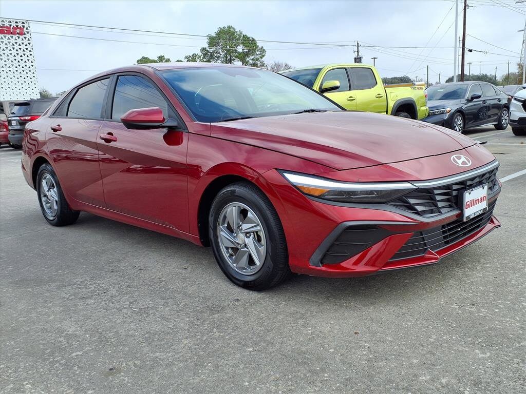 Gillman's Lifetime Engine Warranty lasts as long as you own your vehicle - free with the Gillman Pre-Owned Promise. If the vehicle isn't right for you, return it in purchase condition within 2 days or 200 miles as part of our Happy-Driving Guarantee. (Valid on vehicles under 90,000 miles and less than 7 years old). Upgrade your drive with this striking Red 2024 Hyundai ELANTRA SE Sedan. Featuring a fuel-efficient 2.0L I4 engine paired with a smooth CVT transmission and front-wheel drive, this Elantra delivers both performance and reliability. Enjoy advanced safety features such as Front Automatic Emergency Braking, Lane Keeping Assist, Blind Spot Safety, Rear Cross Traffic Alert, and a Rearview Camera for peace of mind. Stay connected with an 8-inch touchscreen infotainment system, Wireless Apple CarPlay & Android Auto, Bluetooth, and multiple USB ports. Comfort is at your fingertips with premium cloth seats, a tilt & telescopic steering wheel, and convenient storage options like cargo side bins and a reversible cargo tray. LED headlights and aluminum alloy wheels give this sedan a modern, stylish look. With Hyundai's reputation for value and a suite of driver-assist technologies, this Elantra SE is the smart choice for your next vehicle. Visit us today for a test drive! All vehicles subject to prior sale. We are not responsible for typographical errors and may change information without notice. Photos may not depict the actual vehicle. Tax, title, and license fees not included. Dealer Discount available to all buyers.Vehicles purchased from Gillman Automotive Group include a Bring It Back Guarantee: return the vehicle in purchase condition within two days or 200 miles. New current-model-year vehicles and qualifying pre-owned vehicles (under 90,000 miles and less than 7 years old) are eligible. Guarantee is non-transferable and has no cash value. Lifetime Warranty available on select pre-owned vehicles. See dealer for details; restrictions may apply.