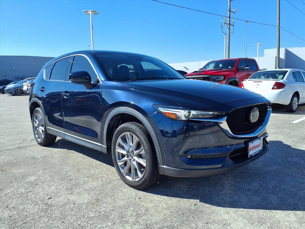 Gillman's Lifetime Engine Warranty lasts as long as you own your vehicle - free with the Gillman Pre-Owned Promise. If the vehicle isn't right for you, return it in purchase condition within 2 days or 200 miles as part of our Happy-Driving Guarantee. (Valid on vehicles under 90,000 miles and less than 7 years old). Discover the perfect blend of performance and luxury with this dark blue 2021 Mazda CX-5 AWD Grand Touring Reserve. Powered by a responsive SKYACTIV-G 2.5L Turbo engine and equipped with all-wheel drive and a 6-speed shiftable automatic transmission, this SUV delivers a dynamic driving experience. Enjoy premium features like leather-trimmed upholstery, heated and ventilated front seats, a heated steering wheel, and a power glass moonroof. Stay connected with a 10.25-inch MAZDA CONNECT infotainment system, Apple CarPlay, Android Auto, and Bose premium audio. Safety is paramount with adaptive cruise control, lane keeping assist, front and rear automatic emergency braking, blind spot monitoring, rear cross traffic alert, and a surround-view camera. The power liftgate, aluminum alloy wheels, and LED headlights add style and convenience. With advanced driver assistance features and a host of luxury touches, this CX-5 is ready for your next adventure. All vehicles subject to prior sale. We are not responsible for typographical errors and may change information without notice. Photos may not depict the actual vehicle. Tax, title, and license fees not included. Dealer Discount available to all buyers.Vehicles purchased from Gillman Automotive Group include a Bring It Back Guarantee: return the vehicle in purchase condition within two days or 200 miles. New current-model-year vehicles and qualifying pre-owned vehicles (under 90,000 miles and less than 7 years old) are eligible. Guarantee is non-transferable and has no cash value. Lifetime Warranty available on select pre-owned vehicles. See dealer for details; restrictions may apply.