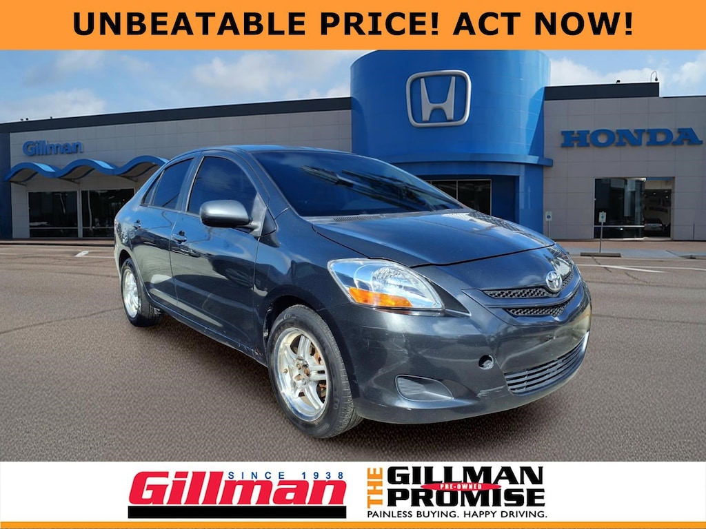 Gillman's Lifetime Engine Warranty lasts as long as you own your vehicle - free with the Gillman Pre-Owned Promise. If the vehicle isn't right for you, return it in purchase condition within 2 days or 200 miles as part of our Happy-Driving Guarantee. (Valid on vehicles under 90,000 miles and less than 7 years old). Affordable and reliable, this 2008 Toyota Yaris Base 4-door sedan is a perfect choice for anyone seeking great value and efficiency. Powered by a fuel-sipping 1.5L DOHC SFI 16V VVT-i 4-cylinder engine with Toyota Direct Injection, it's engineered for dependable performance and impressive fuel economy. Enjoy smooth driving with front-wheel drive, easy maneuverability, and a comfortable interior that makes daily commutes or city trips a breeze. Known for legendary Toyota durability and low cost of ownership, this Yaris is ready to serve its next owner. Ideal for students, commuters, or anyone looking for practical transportation at a budget-friendly price. Don't miss out-contact us today to schedule a test drive! All vehicles subject to prior sale. We are not responsible for typographical errors and may change information without notice. Photos may not depict the actual vehicle. Tax, title, and license fees not included. Dealer Discount available to all buyers.Vehicles purchased from Gillman Automotive Group include a Bring It Back Guarantee: return the vehicle in purchase condition within two days or 200 miles. New current-model-year vehicles and qualifying pre-owned vehicles (under 90,000 miles and less than 7 years old) are eligible. Guarantee is non-transferable and has no cash value. Lifetime Warranty available on select pre-owned vehicles. See dealer for details; restrictions may apply.