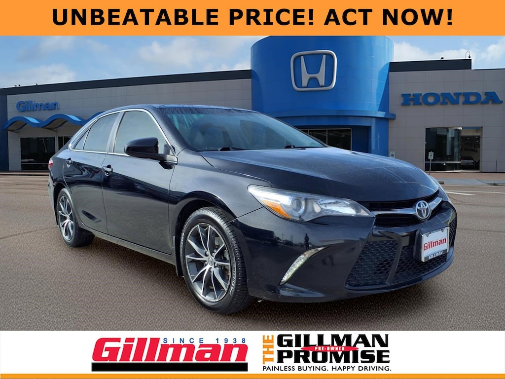 Gillman's Lifetime Engine Warranty lasts as long as you own your vehicle - free with the Gillman Pre-Owned Promise. If the vehicle isn't right for you, return it in purchase condition within 2 days or 200 miles as part of our Happy-Driving Guarantee. (Valid on vehicles under 90,000 miles and less than 7 years old). Step into sophistication with this Black 2017 Toyota Camry XSE 4dr Sedan. Enjoy a sporty ride powered by a 2.5L I4 engine paired with a 6-speed shiftable automatic transmission and front-wheel drive. The XSE trim features leather-trimmed upholstery with stylish faux suede accents, a power-adjustable driver seat with lumbar support, and heated front seats for ultimate comfort. Stay connected with the 7-inch Entune infotainment system, Bluetooth, voice-operated hands-free phone integration, and SiriusXM satellite radio. Convenience abounds with keyless entry, push-button start, a wireless charging station, and a power tilt/slide moonroof. Safety is paramount, with a rearview camera, LED daytime running lights, blind spot monitoring, and a suite of airbags. Aluminum alloy wheels, a lip rear spoiler, and smoked chrome grille lend striking curb appeal. With dual-zone automatic climate control, paddle shifters, and a JBL premium audio system, this Camry XSE delivers the perfect blend of performance, luxury, and technology. All vehicles subject to prior sale. We are not responsible for typographical errors and may change information without notice. Photos may not depict the actual vehicle. Tax, title, and license fees not included. Dealer Discount available to all buyers.Vehicles purchased from Gillman Automotive Group include a Bring It Back Guarantee: return the vehicle in purchase condition within two days or 200 miles. New current-model-year vehicles and qualifying pre-owned vehicles (under 90,000 miles and less than 7 years old) are eligible. Guarantee is non-transferable and has no cash value. Lifetime Warranty available on select pre-owned vehicles. See dealer for details; restrictions may apply.