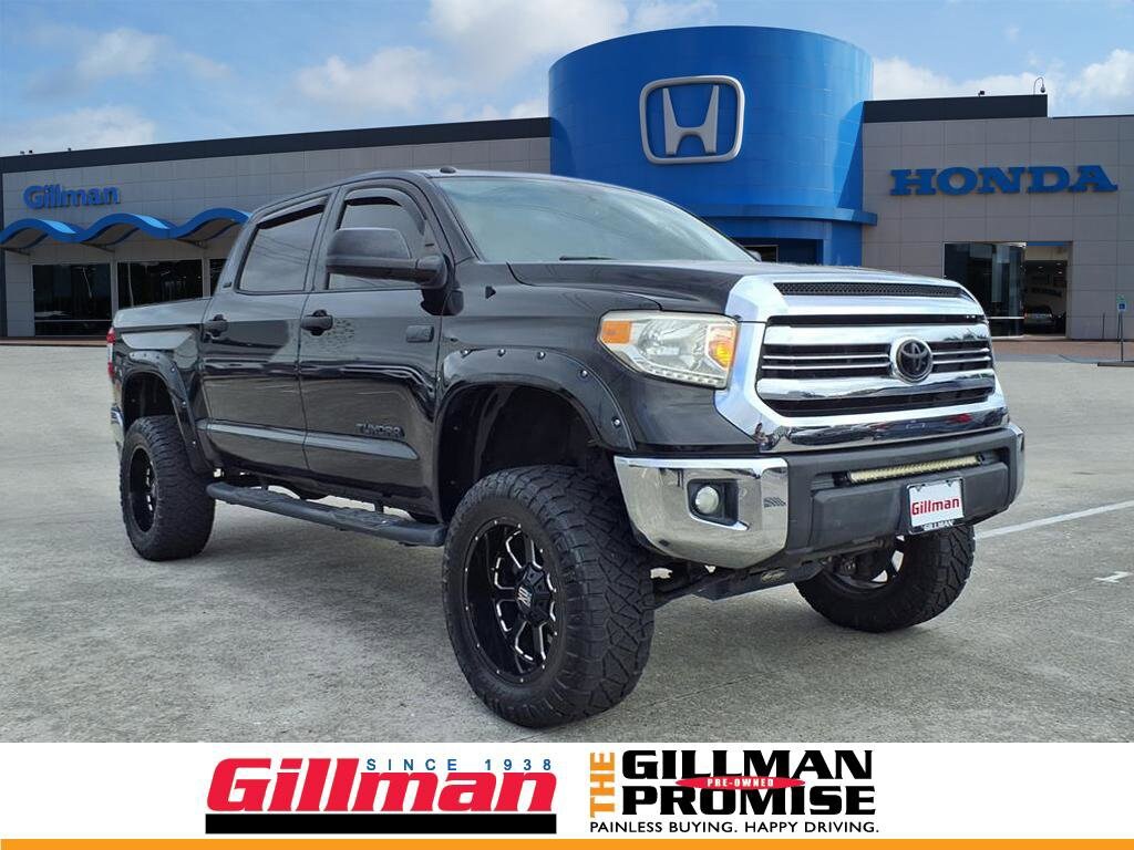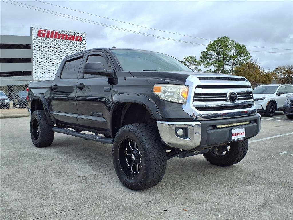 Gillman's Lifetime Engine Warranty lasts as long as you own your vehicle - free with the Gillman Pre-Owned Promise. If the vehicle isn't right for you, return it in purchase condition within 2 days or 200 miles as part of our Happy-Driving Guarantee. (Valid on vehicles under 90,000 miles and less than 7 years old). Take on any challenge with this rugged Black 2017 Toyota Tundra SR5 CrewMax 4x4, powered by a robust 5.7L V8 engine. Enjoy the comfort and convenience of a spacious CrewMax cab, Entune Premium Audio with integrated navigation, Bluetooth, SiriusXM, and voice controls. Stay connected with a 7-inch touchscreen, rearview camera, and Scout GPS Link. This Tundra is ready for towing with a trailer brake controller, receiver hitch, 7-pin wiring, tow/haul mode, and heavy-duty battery. Safety features include front and rear side curtain airbags, stability and traction control, LATCH child seat anchors, and a rearview monitor. Additional highlights: rear privacy glass, full-size spare, power sliding rear window, alloy dash trim, and keyless entry. Built for work or play, this Tundra is your ticket to dependable performance and versatility. All vehicles subject to prior sale. We are not responsible for typographical errors and may change information without notice. Photos may not depict the actual vehicle. Tax, title, and license fees not included. Dealer Discount available to all buyers.Vehicles purchased from Gillman Automotive Group include a Bring It Back Guarantee: return the vehicle in purchase condition within two days or 200 miles. New current-model-year vehicles and qualifying pre-owned vehicles (under 90,000 miles and less than 7 years old) are eligible. Guarantee is non-transferable and has no cash value. Lifetime Warranty available on select pre-owned vehicles. See dealer for details; restrictions may apply.